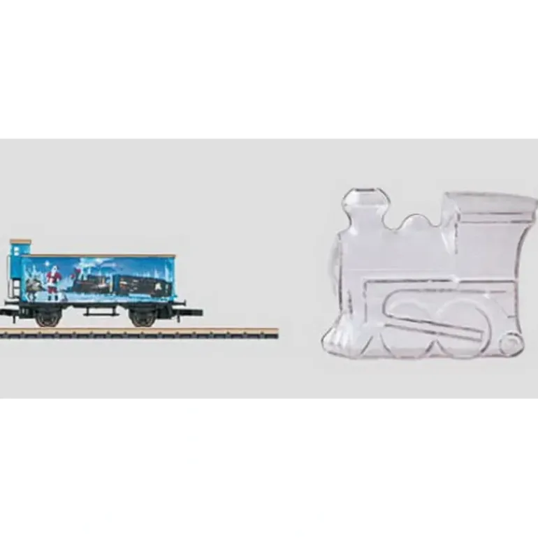 Here is a Marklin 80618 Z 2008 Christmas Ornament w/ Freight Car. This item features a plastic train ornament and a freight cars with plastic construction, metal wheels, and plastic couplers.