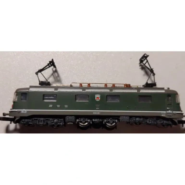 Here is a Marklin Z Scale SBB CFF Electric Locomotive. This locomotive features metal construction with a weighted chassis, a powerful motor, directional lighting, metal wheels and axles, fish-hook couplers, and attractive decoration.