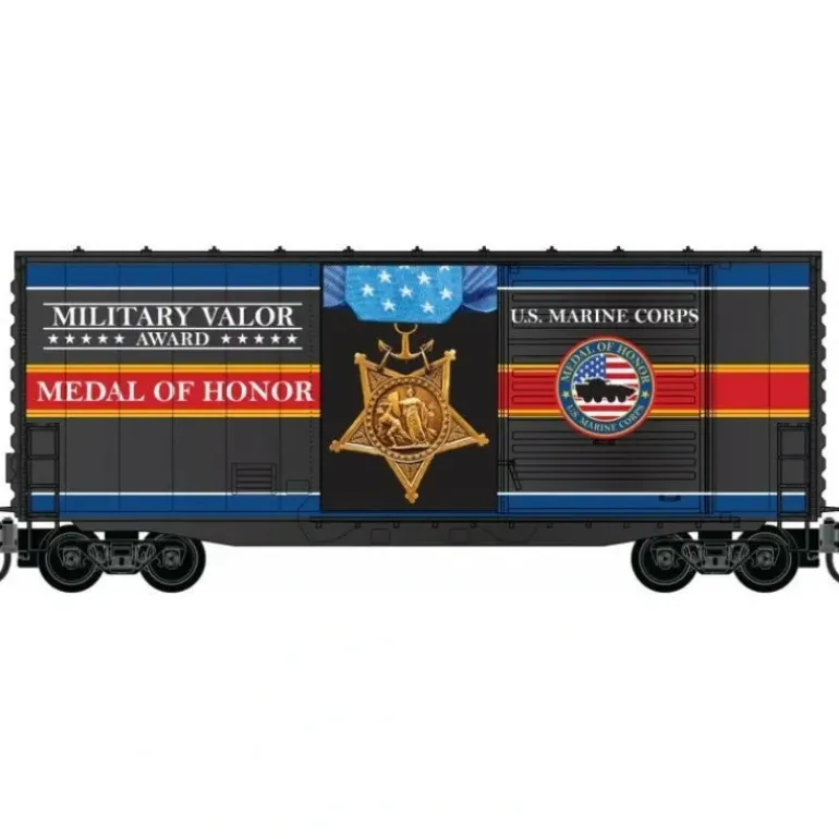 The prestigious Valor Awards are America’s time-honored tradition of recognizing the acts of valor performed by Soldiers, Sailors, Airmen and Marines. These 40′ hy-cube box cars will include a recessed image of the individual medal. Medals are for decoration only, not an actual medal.