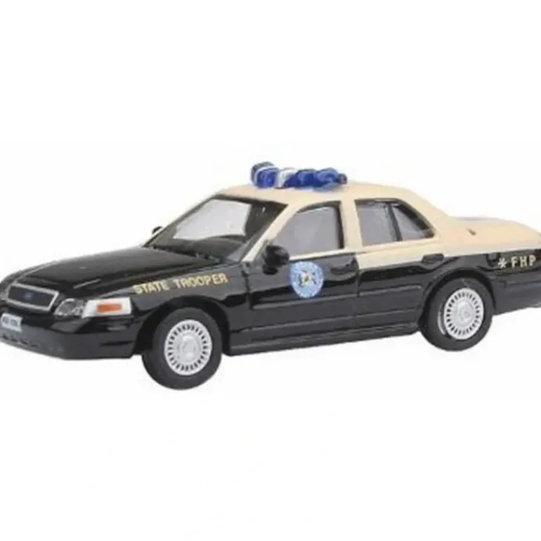 This is the 1/87 Scale 2005 Crown Victoria Florida State Police with Police Light from the Model Power Minis Series. Suitable for Ages 5 & Older. Features: Exclusive collection Superior quality and value Precision heavy die cast metal body Fully painted black and cream Complete interior detail Rubber tires Accurately detailed silver wheels Comes in a two-piece stackable display box, which consists of a hard clear plastic lid and removable black base. Includes One vehicle. Scale: HO 1/87 Display case size – Length: 3-1/8 (79mm) Width: 2 (51mm) Height: 1-3/4 (44mm).