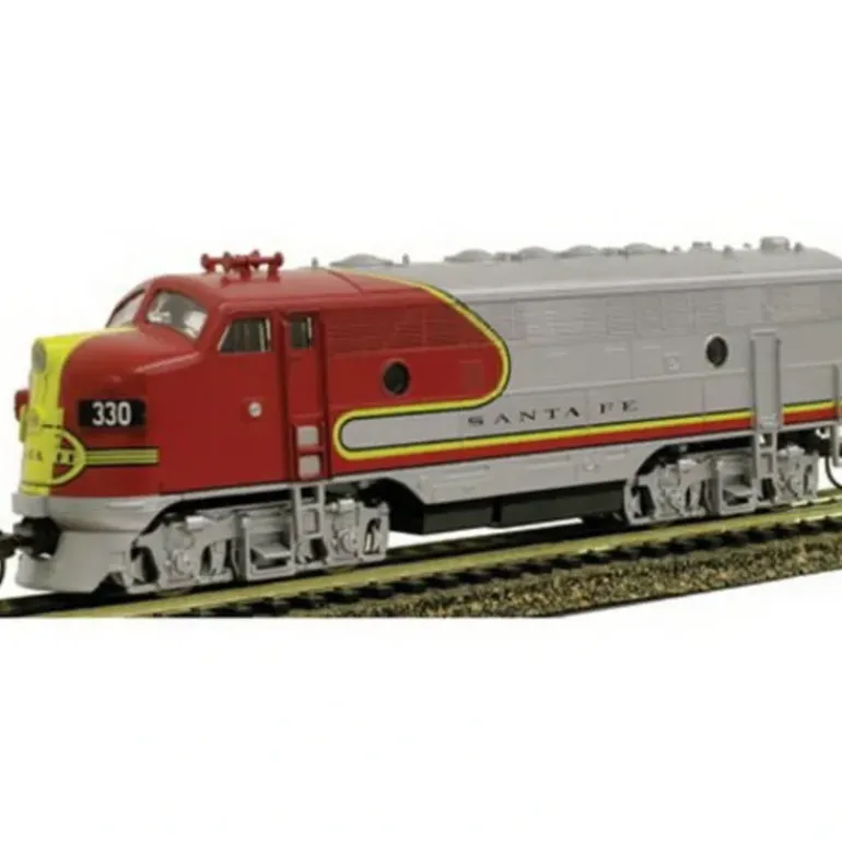 Here is a Model Power 2160 HO Scale ATSF F7 Metal Diesel. This locomotive features intricately realistic detail, metal wheels, attractive decoration, and a powerful motor.
