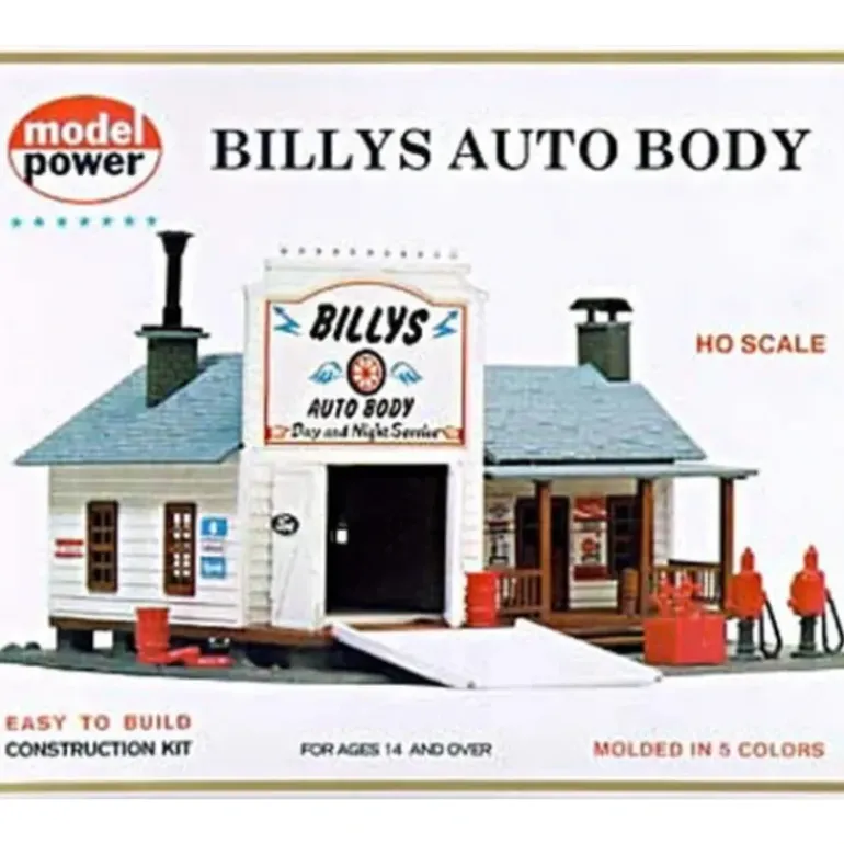 This is a Model Power 414 HO Scale Billy’s Auto Body Building Kit.