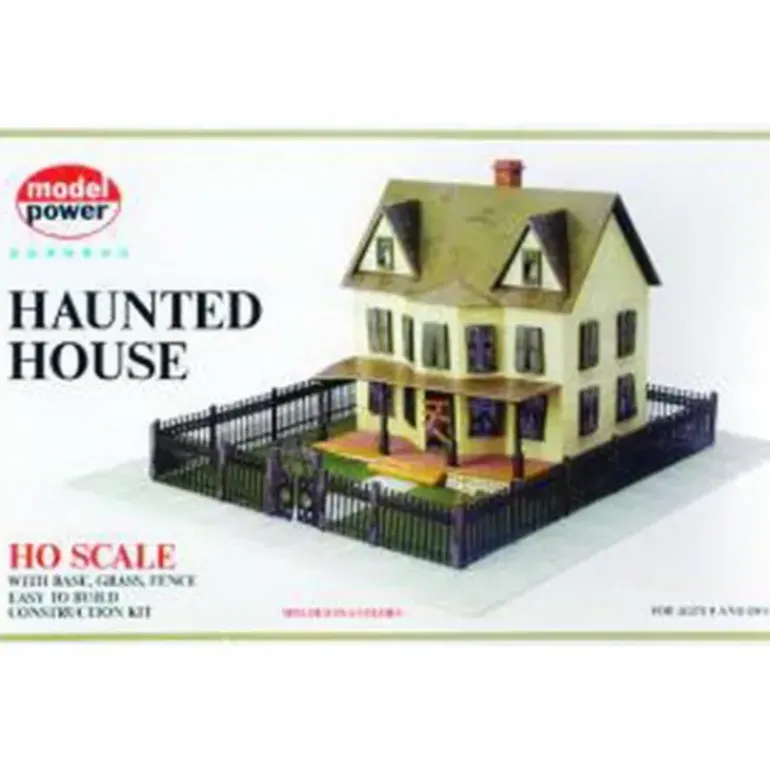 This HO Scale Haunted House kit includes durable plastic parts, a sturdy base and molded pieces in six different colors.