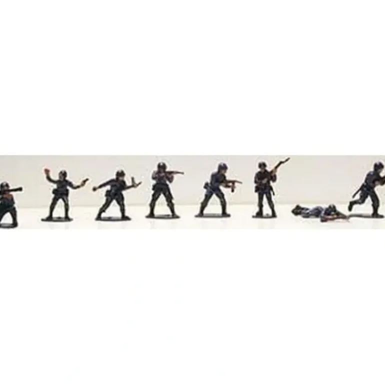This Package Contains 8 Plastic Commando Action Figures to Use With Your HO Scale Train or Scenic Layouts from Model Power. Features: Molded HO scale plastic pieces, Hand painted, Each soldier is molded in different action poses, Small plastic support bases are molded to each standing or kneeling figure, Dark blue uniforms and combat helmets, Each are armed and ready for action! Includes: Eight Commando Action Figures in HO Scale. Scale: HO 1/87. Avg. Height: 1 (2.4cm).
