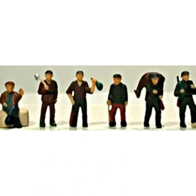 This is a Set of HO Scale Hunter Figures from Model Power. Model Power has designed this set of Hunter Figures to be used in your HO Scale railroads layouts or diorama settings. Not recommended for ages 6 and under. Features: Hand painted figures, Each figure is dressed for a day in the woods, #1: Older gentleman is along for the ride, he is sitting on a log smoking his pipe, he is wearing gray pants, black boots, a tan jacket and hat, #2: He is carrying an axe, he is wearing a brown hunting suit and black cap, #3: Hunter is wearing brown slacks, tan shirt and has a shotgun and game, #4: Hunter has bagged his deer, he is dressed in all brown, #5: Older gentleman with cane is dressed in brown slacks and brown coat, #6: This hunter is dressed in military fashion—-he is carrying his rifle and binoculars. Includes: Six Ho Scale Hunter Figures (men dressed for sport).