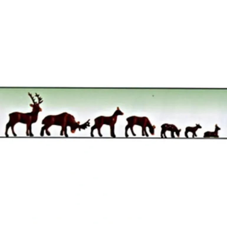 Model Power Designed this Set of 7 Plastic Deer (Brown) for use with your HO Scale Railroad Layouts and Diorama Settings. Features: Molded HO scale plastic pieces, Hand painted brown deer – 2 Bucks, 2 Doe, 3 Fawn – White spots on the fawns, Add wildlife to your model layout wooded area. Includes: Seven N Scale Plastic Deer. Scale: HO 1:87.