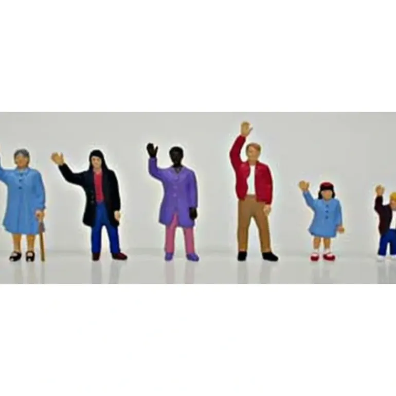 This package contains 6 Model Power Plastic Waving People to use with your HO Scale Train or Scenic Layouts. Features: Very realistically molded plastic people, Hand painted, The blister pack portion of the carded packaging may be used to create bases for the figures to stand on, This carded package includes several sizes of adult and children waving with one arm upraised. Scale: HO 1/87. Height: 7/8 (2.2cm).