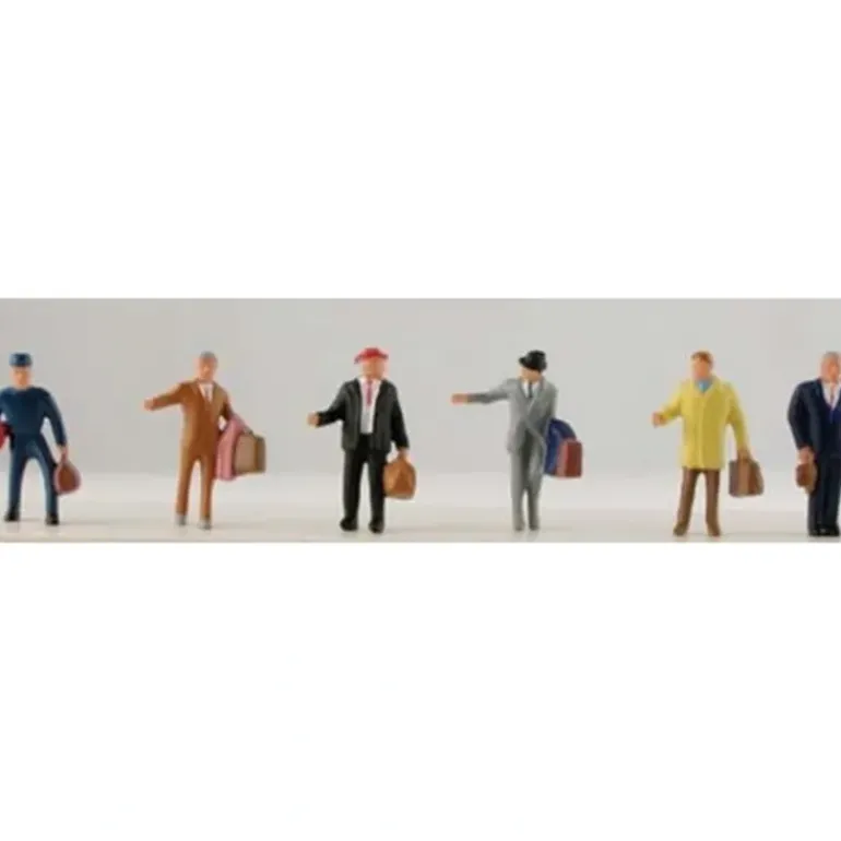 These are Traveler Figures from Model Power. Features: Hand painted, Sculpted in a lightweight, plastic material, Assorted male figures molded in a variety of standing/walking poses. Includes (6) Figures. Scale: HO (1:87).