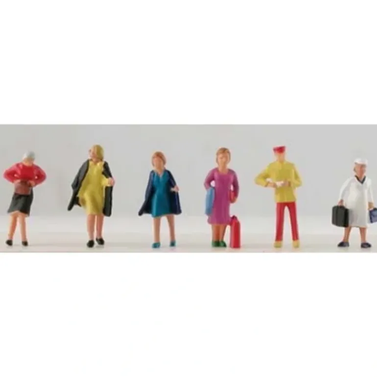 These are Women On the Move Figures from Model Power. Features: Hand painted, Sculpted in a lightweight, plastic material, Assorted female figures molded in a variety of standing/walking poses. Includes (6) Figures. Scale: HO (1:87).