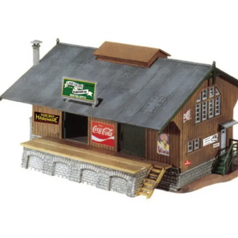 Here is a Model Power 775 HO Scale Built-up 1940 Era Railroad Depot. Suitable for Ages 14 & Older. Features: The building is completely built-up in multi-colored plastic parts, and fully decorated, Handpainted working figures molded in action poses, Lighted, Realistically molded details. Includes: One warehouse with two figures. Requires: Wiring to layout. Specs: Scale: HO 1/87. This is the HO Scale 1940 Era Railroad Depot Built-Up from Model Power. Suitable for Ages 14 & Older. Features: The 1940 Ear Railroad Depot is completely built-up inmulti-colored plastic parts, and fully decorated, Handpainted working figures molded in action poses, Lighted, Realistically molded details. Includes: One 1940 Era Railroad Depot with two figures. Requires: Wiring to layout. Scale: HO 1/87.
