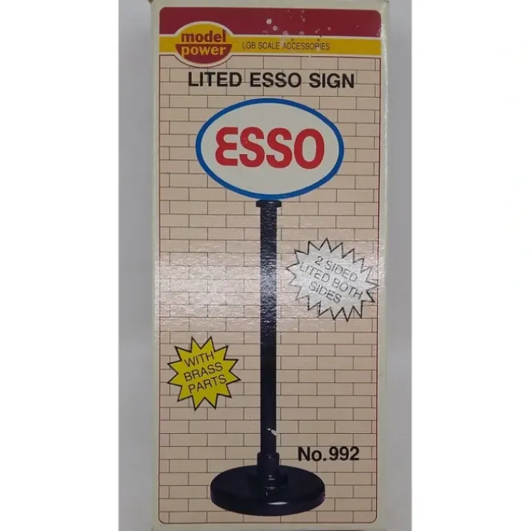 This is a Model Power 992 G Scale Esso Station Sign. It is constructed of brass, is illuminated and is free standing.