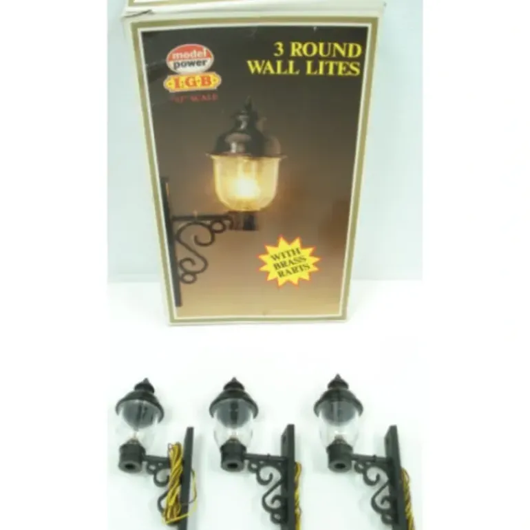 This is a Model Power 999 G Scale Round Wall Lights (Box of 3).