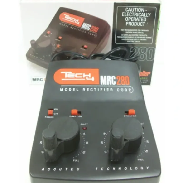 This is an MRC AB116 All Scales Tech 4 280 Dual Power 16VA. This item features: Accutec Technology, Proportional Tracking Control, Directional Controls, Ergonomic Design, Rugged Engineering-Resin Housing, Power On Indicator Lights, Fixed A.C. Output for Accessories, and Automatic Circuit Protection. This controller works for HO, N, O, S, Z, and other Scale DC Trains. Please see my pictures for additional features.