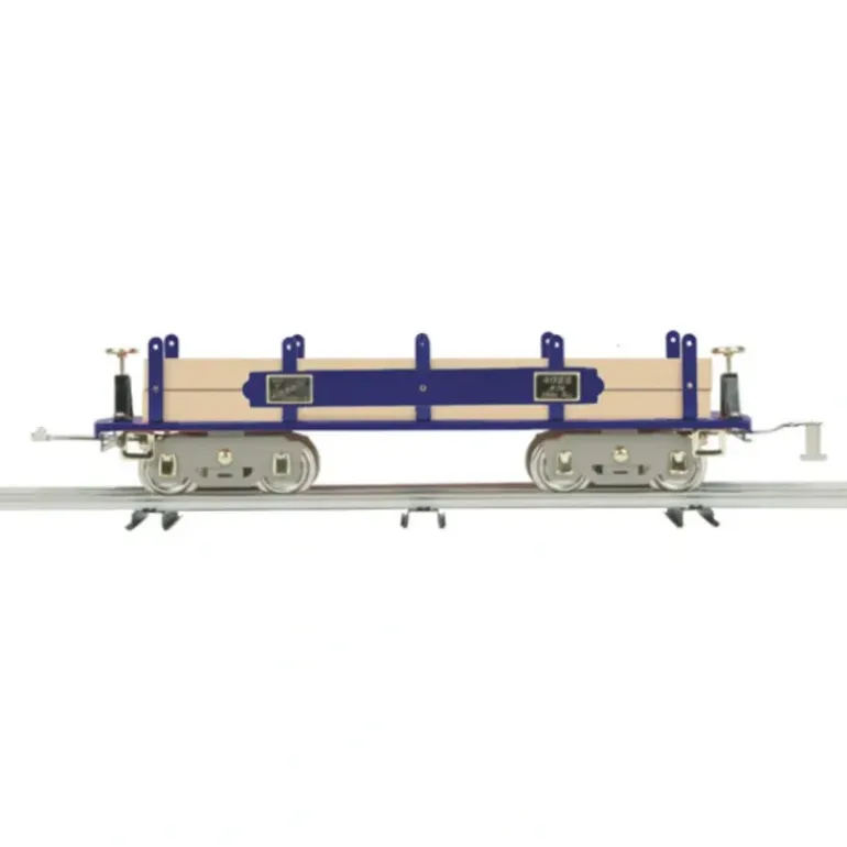 This item is part of a special factory clearance sale from MTH and is subject to stock availability. Quantities are very limited! If this item is ordered and sold out, you will be issued a full refund. Here is a MTH 10-2200 Blue 4022 Flat Car w/Wood Load. Features: Stamped Steel Body and Chassis Metal Wheels and Axles Operating Metal Latch Couplers Baked Enamel Finish Colorful, Attractive Paint Schemes Unit Measures:15 x 3 1/2 x 3 1/2 Operates On STD-42 Curves