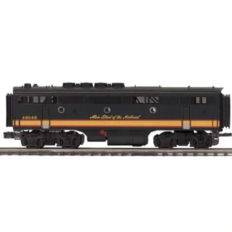 Here is an MTH 20-20045-3 Northern Pacific F-3 B-Unit Diesel (Dummy). It features metal wheels and axles, an authentic paint scheme, metal handrails and a decorative horn, two engineer cab figures, metal body side grilles, and operating knuckle couplers.