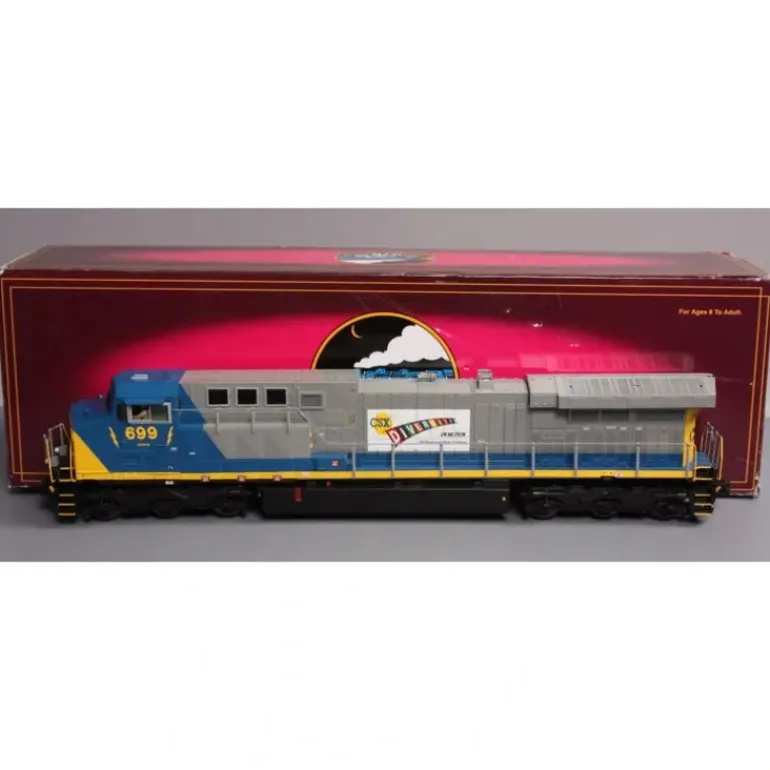 Here is a MTH 20-2833-3 O CSX AC6000 Diesel Engine (Non-Powered). This engine features Remotely Controlled Proto-Couplers Metal Chassis (2) Precision Flywheel Equipped Motors Illuminated Number Boards Intricately Detailed ABS Body Directionally Controlled Headlights Die-Cast Truck Sides, Pilots and Fuel Tank Authentic Paint Scheme Metal Handrails and Decorative Horn Lighted Cab Interior (2) Engineer Cab Figures Metal Body Side Grilles Operating Ditch Lights Operating Smoke Unit Metal Wheels, Axles and Gears Locomotive Speed Control