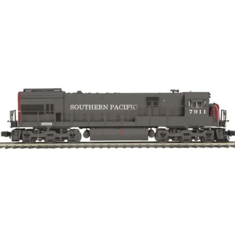 Here is an MTH 20-2848-3 Southern Pacific GE U30C Diesel Engine (Non-Powered). It features metal wheels and axles, an authentic paint scheme, metal handrails and a decorative horn, two engineer cab figures, metal body side grilles, and operating knuckle couplers.