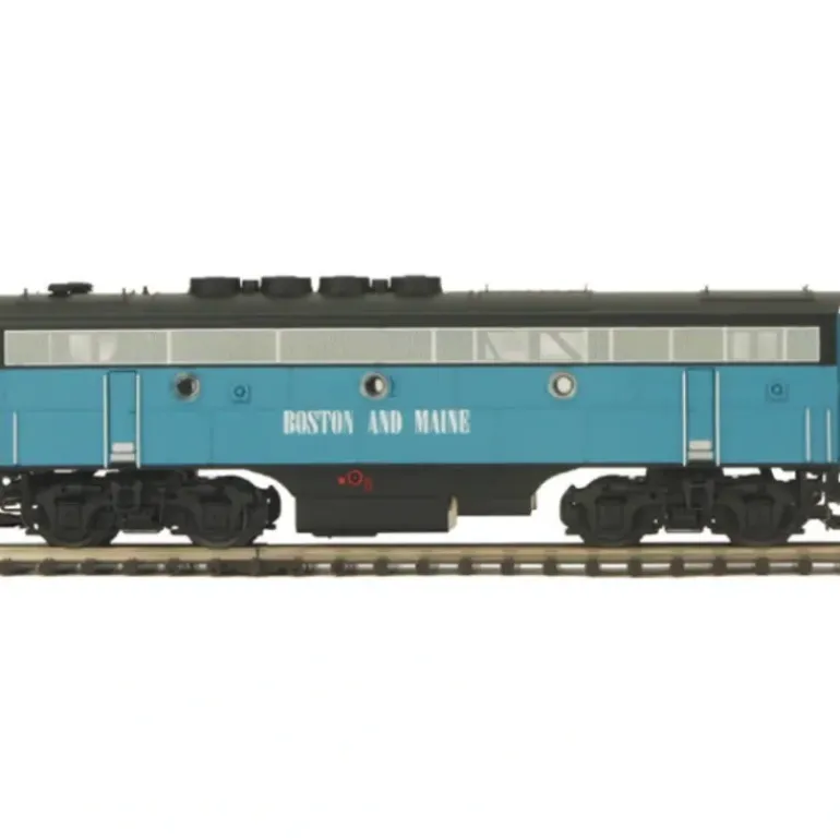 This is an MTH 20-2921-3 Boston & Maine F-3 B-Unit Non-Powered Diesel Engine #4228B. From 1942-1945, Electro Motive Division’s F-unit was the only road freight diesel built in America. While the War Production Board limited competitors Alco and Baldwin to diesel switcher and steam locomotive production during World War II, EMD’s 1,350 hp FT became a runaway best-seller. By war’s end, Electro Motive had a lead over its competitors that would last until they closed their doors. With production restrictions lifted and the U.S. economy humming with pent-up demand, railroads clamored for new diesels to replace a steam fleet exhausted by wartime traffic. In July 1946, EMD introduced a new model F-unit, the F3. Horsepower was upgraded to 1,500 and lessons learned on the FT gave the F3 better reliability and lower maintenance. Under the hood, an improved 567-series V-12 engine throbbed. With 567 inches of displacement per cylinder, this same engine would power virtually the entire first generation of EMD diesel locomotives. The F3 hit the market in an era when almost every boy in America wanted toy trains for Christmas, and F3 models quickly became a hot topic in letters to Santa. Such was the desire of railroads for publicity that Lionel convinced the Santa Fe, the New York Central, and EMD to share the tooling costs for its top-of-the line F3. Even today, half a century later, the Santa Fe F-unit remains an icon of railroading to the American public. Features include: 1) Metal Wheels and Axles, 2) (2) Operating Metal Couplers, 3) Die-Cast Truck Sides, Pilots and Fuel Tank, 4) Colorful Paint Scheme, 5) Metal Chassis, 6) Metal Handrails and Decorative Horn, 7) Spinning Roof Fans, 8)Metal Body Side Grilles, 9) Intricately Detailed ABS Body, 10) Unit Measures: 13 x 2 5/8 x 3 3/4, 11) Operates on O-31 Curves.