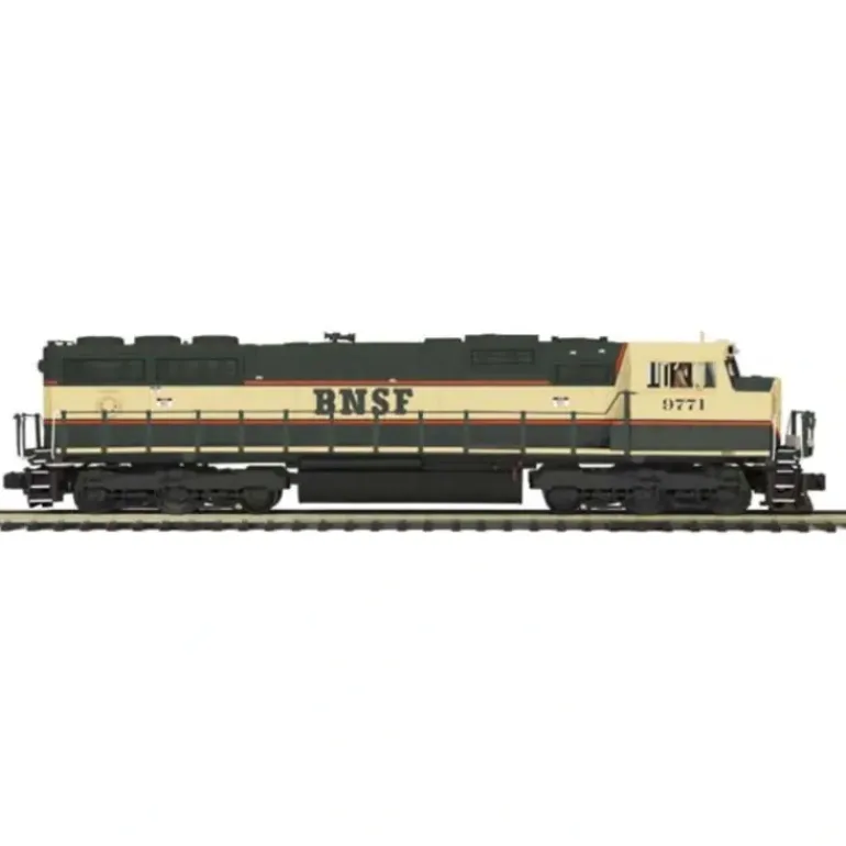 Here is an MTH 20-2956-3 BNSF SD70Mac Diesel Engine (Non-Powered). It features metal wheels and axles, an authentic paint scheme, metal handrails and a decorative horn, two engineer cab figures, metal body side grilles, and operating knuckle couplers.