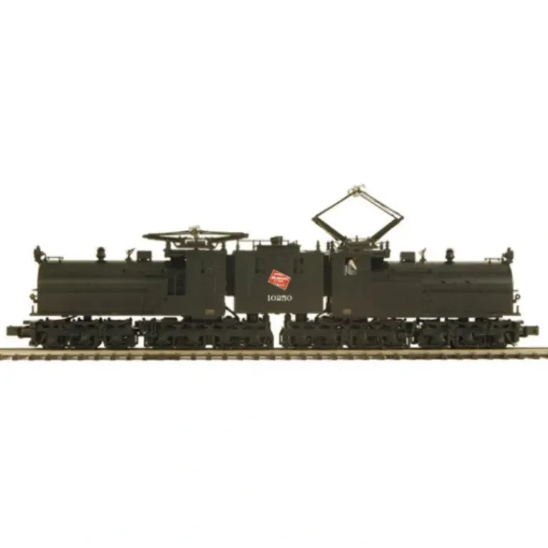 Chicago Milwaukee, St. Paul, and Pacific. The Milwaukee Road’s full name described its route perfectly – from the Midwest to the Northwest with not much in between. After Chicago and the Twin Cities, a passenger on the road’s Olympian saw virtually nothing but farms, ranches, and mountains for 1500 miles until he reached the Coast at Tacoma or Seattle. But in 1919, this sparsely traveled mountainous route seemed the ideal place for the General Electric Company and what was then called the Chicago Milwaukee and St. Paul Railway to prove a point: electric power was the Future of American Railroading. And the five EP-2 Bi-Polars were going to be the engines to do it. Officially called Bi-Polar Gearless Types, they were vastly superior to the steam locomotives of their day. With 3,200 continuous horsepower, an EP-2 could pull 13 Pullmans up a 2.2% grade, an incredibly steep hill in real-life railroading. Unfamiliar with electric locomotives, shop crews in Milwaukee severely compromised the dependability of the engines, while making a modest attempt to streamline the Bi-Polars’ exteriors, mainly by rounding off the noses. The engines became so failure-prone that all five were retired by 1960; one survives today in the National Museum of Transport in St. Louis. The Bi-Polar returns to the Premier Line in 2007 in its original, non-streamlined body style. Recreate the Olympian of the 1920s with the as-delivered black paint scheme and a string of heavyweight cars, or the postwar Olympian Hiawatha with its signature Skytop observation and Super Dome full-length dome cars. Either way, you’ll get to watch one of the smoothest-running electrics in O gauge snake its way through curves, blow smoke from its train heat boiler, and start and stop so gently that you’ll never spill the water in the diner. Did You Know? The “Bi-Polar Gearless” designation referred to the fact that each of the EP-2’s twelve traction motors had only two poles. The motor armatures were mounted directly on each drive wheel axle, with the two field poles mounted on the chassis surrounding each axle. Simply put, the motor shaft and the drive wheel axle were one and the same. This made for an unusually quiet locomotive because there was no gear noise and very little motor whine, since motor speed was only 458 RPM at 60 miles per hour. Features include Directionally Controlled Headlights, Intricately Detailed Die-Cast Body, Metal Wheels, Axles and Gears, Die-Cast Truck Sides & Pilots, (2) Remotely Controlled Proto-Couplers, Authentic Paint Scheme, Metal Handrails and Decorative Horn, (2) Precision Flywheel Equipped Motors, Lighted Cab Interior, Illuminated Number Boards, (2) Engineer Cab Figures, Mechanically Operated Pantographs, Locomotive Speed Control, Operating Smoke Unit, Proto-Sound 2.0 With The Digital Command System Featuring: Passenger Station Proto-Effects, Unit Measures:20″ x 2 1/2″ x 4 5/8″, and it Operates On O-72 Curves.
