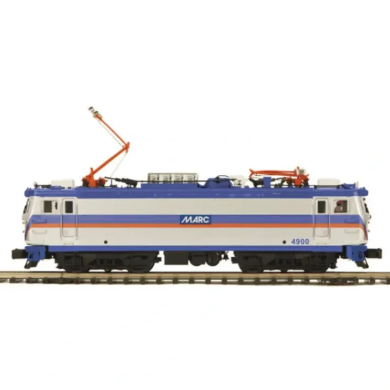Here is an MTH 20-5625-1 MARC AEM-7 Electric Locomotive – With Proto-Sound 2.0. Features Include: Die-Cast Truck Sides, Pilots and Fuel Tank, Colorful Paint Scheme, Metal Chassis, Metal Body Side Grilles, Intricately Detailed ABS Body, Operating Pantographs, (2) Cab Figures, Metal Wheels and Axles, (2) Operating Metal Couplers, Unit Measures: 13 1/2 x 2 3/8 x 3 5/8, and Operates On O-42 Curves.