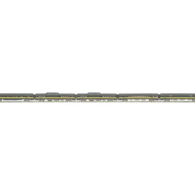 Included is Baggage #101, Coach1 #206, Vista1 #522, Vista2 #523, and Observation Aurora. It is hard to match the excitement and beauty of a long, sleek passenger train speeding down the rails. M.T.H.’s Premier Line scale streamlined passenger cars and sets will bring exactly the right, realistic look to your passenger consists. No other manufacturer matches the quality and value found inside an M.T.H. Premier Line passenger car. Using an intricately detailed, yet durable ABS body atop smooth rolling die-cast metal trucks results in a lightweight car that won’t bog down a locomotive struggling to pull heavy aluminum passenger cars. What’s more, each Premier Line passenger car features detailed car interiors and overhead lighting for a realistic and authentic appearance. Separately sold passenger car figures can be added for those desiring an added touch of realism. Features include Durable ABS Intricately Detailed Bodies, Metal Wheels and Axles, Overhead Interior Lighting, Die-Cast 4-Wheel Trucks, Operating Die-Cast Metal Couplers, Colorful, Attractive Paint Schemes, End-of-Car Diaphragms, and Separate Metal Handrails.