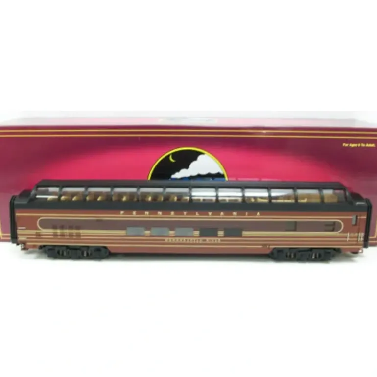 This is an MTH 20-67047 Pennsylvania 70′ ABS Full Length ‘MONONGAHELA RIVER’ Vista Dome Passenger Car – Smooth. It is hard to match the excitement and beauty of a long, sleek passenger train speeding down the rails. M.T.H.’s Premier Line scale Streamlined passenger cars and sets will bring exactly the right, realistic look to passenger consists. Add-on cars for separately sold 5-car sets make creating a longer train easy and fun. Painted to the exact same specifications as the matching set, each single and 2-car add-on set will look great when mixed with other cars. The durable ABS body rides atop the same smooth rolling die-cast metal trucks used on the set cars. And, each add-on car features opening car doors, detailed car interiors and overhead lighting for a realistic and authentic appearance. Separately sold passenger car figures can be added for those desiring an added touch of realism. Features include Durable ABS Intricately Detailed Bodies, Metal Wheels and Axles, Overhead Interior Lighting, Die-Cast 4-Wheel Trucks, Operating Die-Cast Metal Couplers, Colorful, Attractive Paint Schemes, End-of-Car Diaphragms, and Separate Metal Handrails.