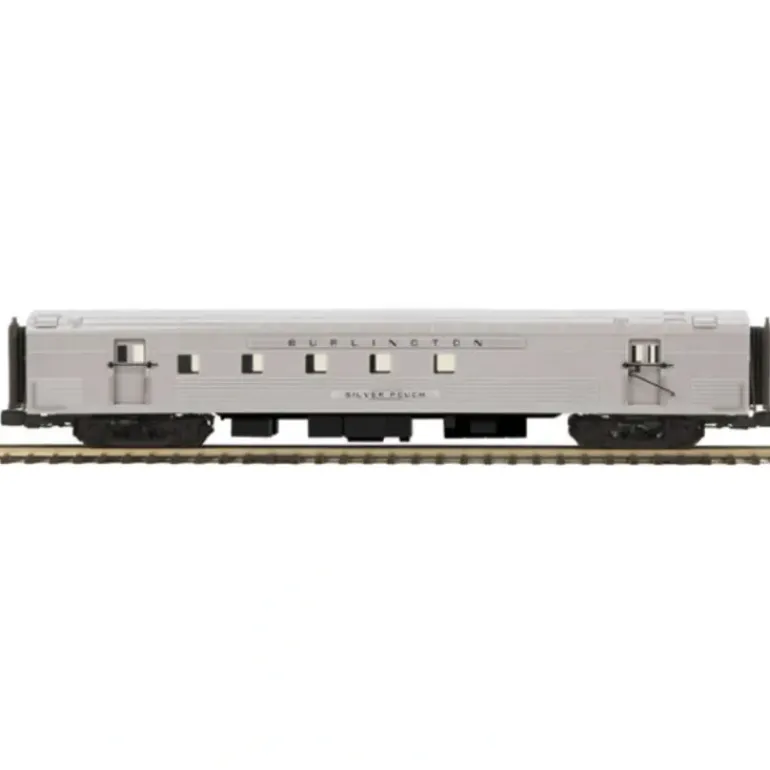 Here is an MTH 20-68133 Burlington 70′ ABS RPO Passenger Car (Ribbed) V2. It is hard to match the excitement and beauty of a long, sleek passenger train speeding down the rails. M.T.H.’s Premier Line scale streamlined passenger cars and sets will bring exactly the right, realistic look to your passenger consists. No other manufacturer matches the quality and value found inside an M.T.H. Premier Line passenger car. Using an intricately detailed, yet durable ABS body atop smooth rolling die-cast metal trucks results in a lightweight car that won’t bog down a locomotive struggling to pull heavy aluminum passenger cars. What’s more, each Premier Line passenger car features detailed car interiors and overhead lighting for a realistic and authentic appearance. Features include: Durable ABS Intricately Detailed Bodies, Metal Wheels and Axles, Overhead Interior Lighting, Die-Cast 4-Wheel Trucks, Operating Die-Cast Metal Couplers, Colorful, Attractive Paint Schemes, End-of-Car Diaphragms, Fast-Angle Wheel Sets, Needle-Point Axles, Detailed Car Interiors, 1:48 Scale Dimensions, Detailed Car Undercarriage, Separate Metal Handrails, Unit Measures:19 x 2 7/16 x 3 1/2, Operates On O-42 Curves.