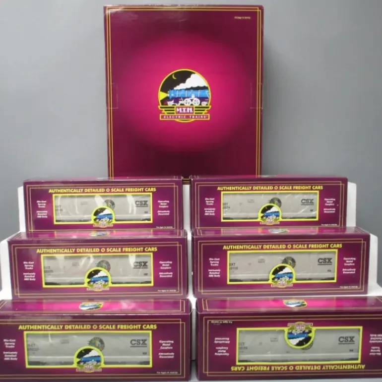 Here is a MTH 20-90437 O CSX 3-Bay Centerflow Hopper Car Set (Set of 6). This set features Intricately Detailed Durable ABS Body, Metal Wheels and Axles, Die-Cast 4-Wheel Trucks, Operating Die-Cast Metal Couplers, Colorful, Attractive Paint Schemes, Decorative Brake Wheels, Fast-Angle Wheel Sets, Needle-Point Axles,1:48 Scale Dimensions. When you prefer the convenience of a ready-to-run unit train, M.T.H. Premier Line 6-car sets are a great choice.