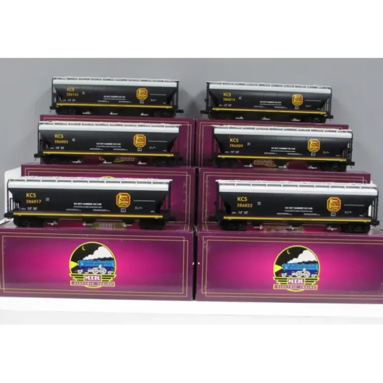 Here is a MTH 20-90439 Kansas City Southern 6-Car 3-Bay Centerflow Hopper Car Set. This set features include: Intricately Detailed Durable ABS Body Metal Wheels and Axles Die-Cast 4-Wheel Trucks Operating Die-Cast Metal Couplers Colorful, Attractive Paint Schemes Decorative Brake Wheels Fast-Angle Wheel Sets Needle-Point Axles 1:48 Scale Dimensions