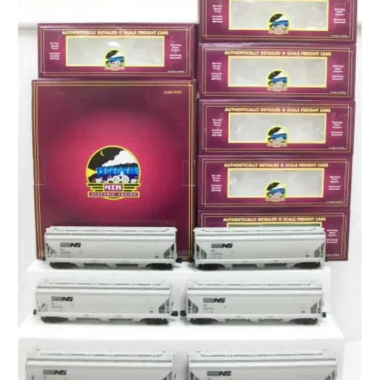 This is a MTH 20-90441 NS 6-Car 3-Bay Center flow Hopper Car Set. Many of the locomotives featured earlier in this catalog. They also go great with any manufacturer’s scale proportioned O Gauge locomotives. Each car in these sets is individually numbered for authentic realism. And, each set is available in two item numbers. The second item number features an entirely different set of 6 cars, each also individually numbered, allowing you to obtain a total of 12 different numbered cars if desired. When you prefer the convenience of a ready-to-run unit train, M.T.H. Premier Line 6-car sets are a great choice.