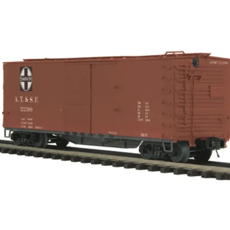 Here is a MTH 20-93296 Santa Fe 40′ USRA Double Sheathed Box Car. This car features die-cast metal sprung trucks, operating knuckle couplers, metal wheels and axles.