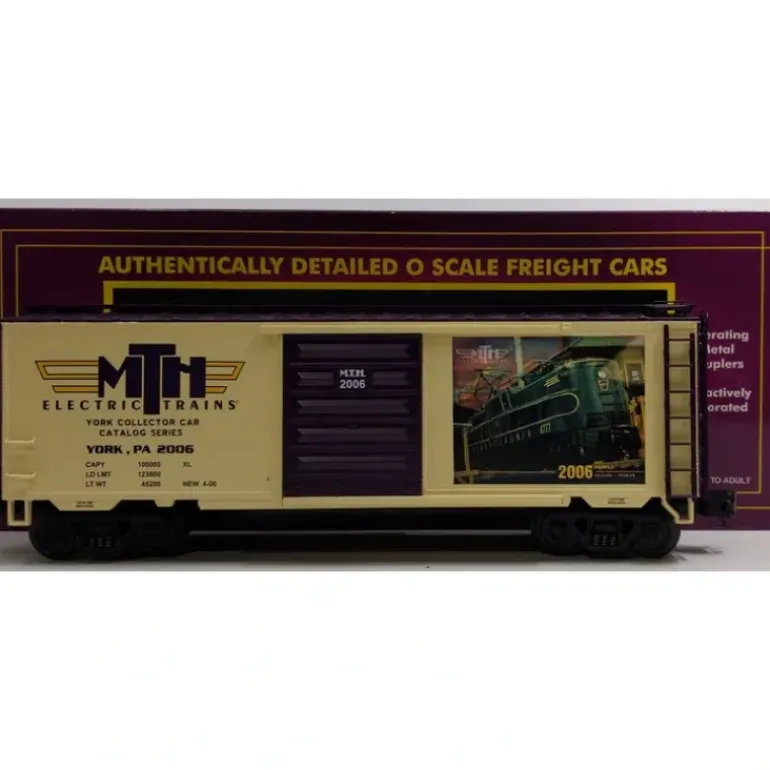This is an MTH 20-93321 TCA Spring York 2006 Boxcar. This boxcar features sliding doors, die-cast metal sprung trucks, die-cast metal operating knuckle couplers, metal wheels and axles.