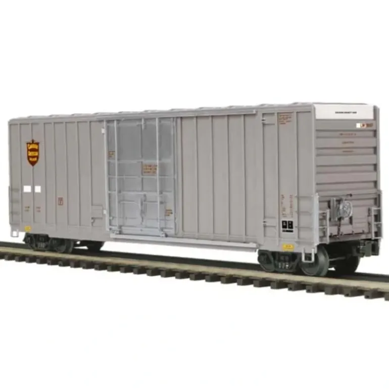 This is an MTH 20-93465 Canadian America 50′ High Cube Box Car. MTH Premier O Scale freight cars are the perfect complement to any manufacturer’s scale proportioned O Gauge locomotives. Whether you prefer to purchase cars separately or assemble a unit train, MTH Premier Rolling Stock has the cars for you in a variety of car types and paint schemes. Virtually every sturdy car is offered in two car numbers which makes it even easier than ever to combine them into a mult-car consist. Many of MTH’s Premier Rolling Stock offerings can also operate on the tightest O Gauge curves giving them even more added versatitlity to your layout.Features Include: Intricately Detailed Durable ABS Body, Metal Wheels and Axles, Die-Cast 4-Wheel Trucks, Operating Die-Cast Metal Couplers, Colorful, Attractive Paint Schemes, Decorative Brake Wheels, Separate Metal Handrails, Fast-Angle Wheel Sets, Needle-Point Axles, Sliding Car Doors, 1:48 Scale Dimensions,Unit Measures:14 1/2 x 2 5/8 x 4 3/16, Operates On O-31 Curves.