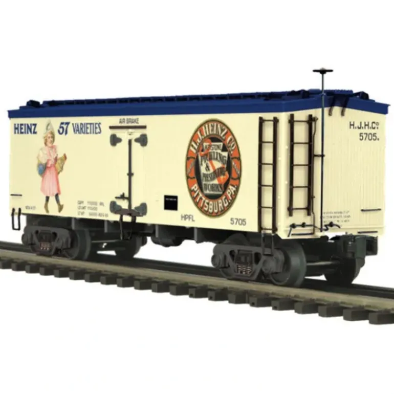 Here is a MTH 20-94331 Heinz 36 Woodsided Reefer Car. Intricate detailed ABS body, die-cast sprung couplers, metal whells and operating couplers.