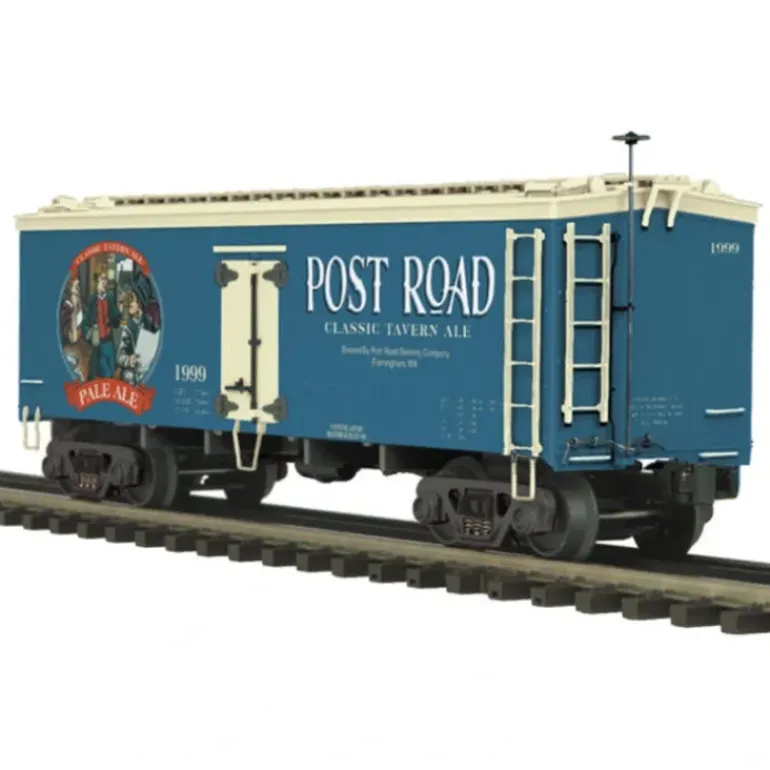 Here is a MTH 20-94344 Post Road Ale 36′ Woodsided Reefer Car. Features include Intricately Detailed Durable ABS Body Metal Wheels and Axles Die-Cast 4-Wheel Trucks Operating Die-Cast Metal Couplers Colorful, Attractive Paint Schemes Decorative Brake Wheels Separate Metal Handrails Fast-Angle Wheel Sets Needle-Point Axles 1:48 Scale Dimensions Opening Car Doors
