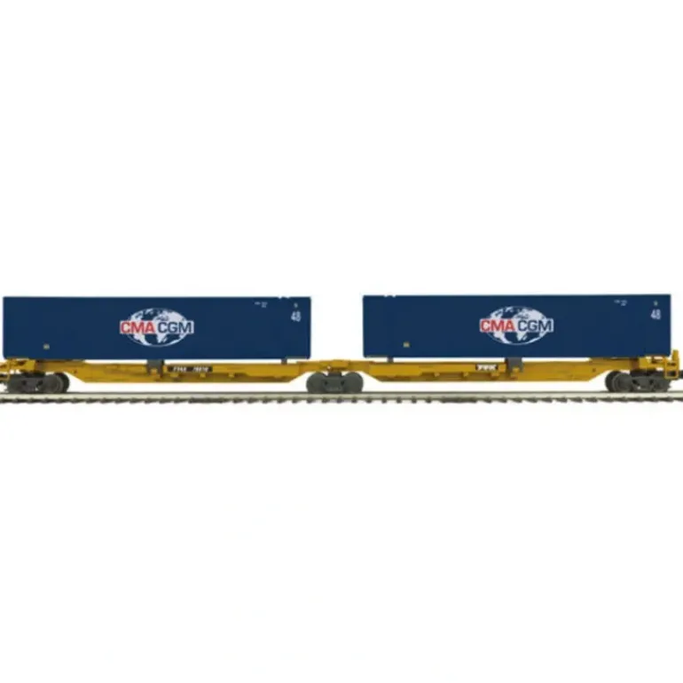 Here is a MTH 20-95066 CMA 2-Car Spine Car Set w/(2) 48′ Containers.