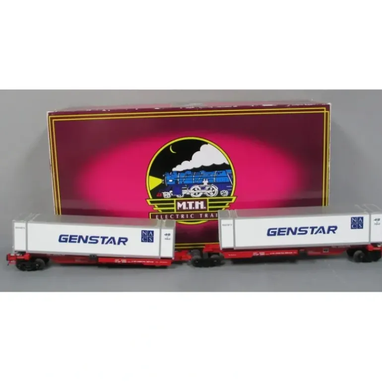 Virtually every sturdy car is offered in two car numbers which makes it even easier than ever to combine them into a mult-car consist. Many of MTH’s Premier Rolling Stock offerings can also operate on the tightest O Gauge curves giving them even more added versatitlity to your layout. Features Include: Intricately Detailed Durable ABS Spine Car Bodies, Metal Wheels and Axles, Die-Cast 4-Wheel Trucks, Operating Die-Cast Metal Couplers, Colorful and Attractive Paint Schemes, Fully Assembled Ready-to-Run, Fast-Angle Wheel Sets,Needle-Point Axles, 1:48 Scale Dimensions, (2) Removeable 48′ Trailers, Operates On O-42 Curves.