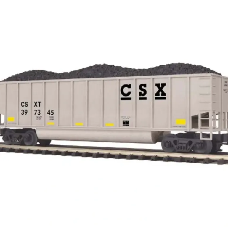 This is an MTH 20-97241 O Gauge CSX Coalporter Hopper Car #397345. This car features die-cast sprung trucks and operating metal couplers.