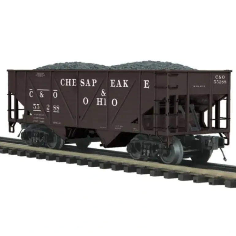 Here is an MTH 20-97251 Chesapeake & Ohio 34′ Composite Hopper Car. This car features die-cast metal sprung trucks, operating knuckle couplers, metal wheels and axles.