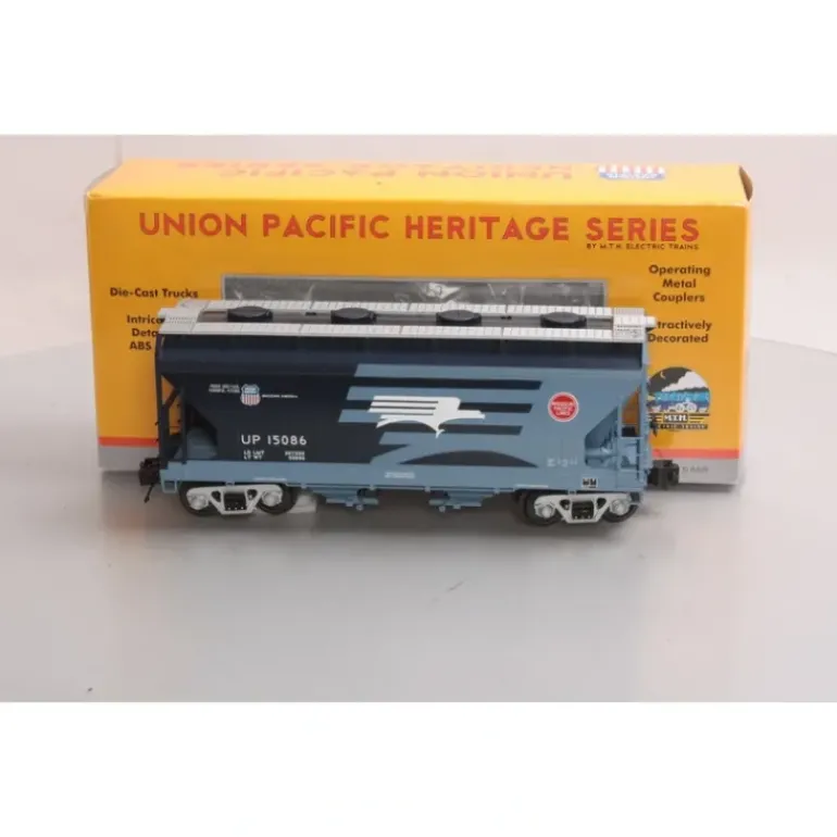 Here is a MTH 20-97650 Missouri Pacific 2-Bay Centerflow Hopper. This hopper is intricately detailed with a durable ABS body and metal wheels and axles. Equipped with die- cast 4-wheel trucks and operating die-cast metal couplers.