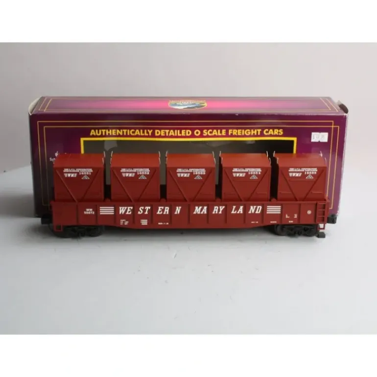 Here is a MTH 20-98071 Western Maryland Gondola Car w/LCL Containers. This car features die-cast sprung trucks and operating metal couplers.