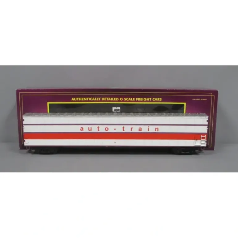 Here is a MTH 20-98534 Auto Train 75′ AutoTrain Auto Carrier. Features: Intricately Detailed Durable ABS Body Metal Wheels and Axles Die-Cast 4-Wheel Trucks Operating Die-Cast Metal Couplers Colorful, Attractive Paint Schemes Fast-Angle Wheel Sets Needle-Point Axles 1:48 Scale Dimension