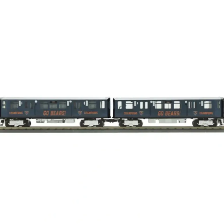 This is an MTH 30-2766-3 Chicago Bears 2-Car 3200 Series Subway Set Add-On Non-Powered Set. Closely resembling the 1970 vintage Boeing built 2400 series cars, the CTA 3200 Series subway car first began appearing on Chicago’s famed “L” in early 1993. Produced by the Morrison Knudsen Corporation (their first order for new transit cars) the consists have been in use throughout the CTA system. The design and performance characteristics of the new 3200 series cars are a far leap over previous subway type passenger equipment. Utilizing state-of-the-art microprocessor propulsion control and inverter auxiliary power supply equipment, the cars can be easily retrofitted from 3rd rail pickups to overhead pantographs. A unique operator’s compartment provides multi-purpose operator/conductor/passenger seating capabilities.