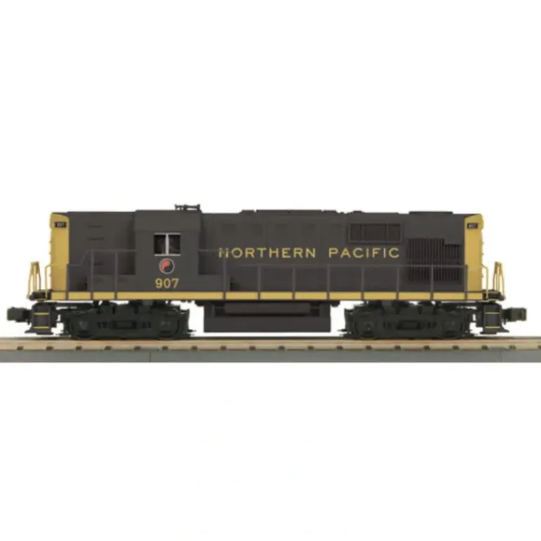 Here is a MTH 30-2818-1 Northern Pacific RS-11 High Hood Diesel Engine w/Proto-Sound 2.0. It features two flywheel-equipped motors, die-cast truck sides, pilots and fuel tank, metal handrails and decorative horn, locomotive speed scontrol, directional headlights, two cab interior figures, metal wheels, axles and gears as well as metal handrails and a decorative horn.