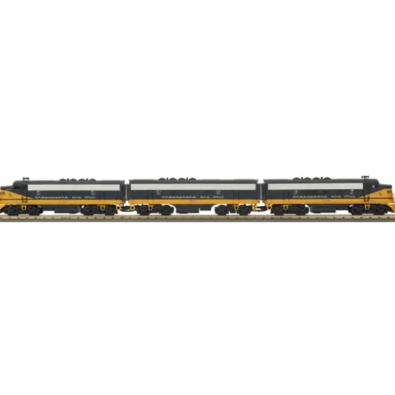 Here is a MTH 30-2851-1 Chesapeake & Ohio F-3 ABA Diesel Engine Set w/Proto-Sound 2.0. This set features Colorful Paint Scheme Die-Cast Metal Chassis Die-Cast Truck Sides, Pilots and Fuel Tank Metal Wheels, Axles and Gears (2) Precision Flywheel Equipped Motors In Powered A Unit (2) Remotely Controlled Proto-Couplersr (one per A Unit) Directionally Controlled Headlights Intricately Detailed ABS Bodies Locomotive Speed Control In Scale MPH Increments Engineer Cab Figure In Each A Unit Operating Smoke Unit In Powered A Unit Proto-Sound 2.0 With The Digital Command System Featuring: Passenger Station Proto-Effects Unit Measures:40 1/4″ x 2 5/8″ x 3 3/4″ Operates On O-31 Curves
