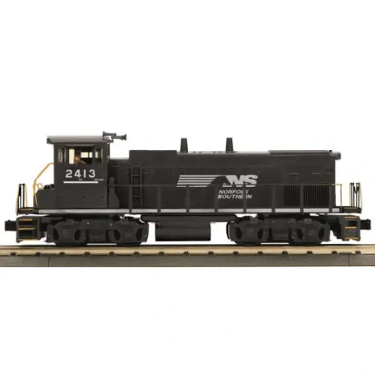 Here is an MTH 30-2939-1 Norfolk Southern MP15DC Diesel Engine with Proto-Sound 2.0. Features include Intricately Detailed ABS Body, Colorful Paint Scheme, Die-Cast Metal Chassis, Metal Handrails and Decorative Horn, Die-Cast Truck Sides, Pilots and Fuel Tank, (2) Cab Figures, Directionally Controlled Headlights, Metal Wheels, Axles and Gears, (2) Remotely Controlled Proto-Couplers, (2) Precision Flywheel Equipped Motors, Locomotive Speed Control In Scale MPH Increments, Proto-Sound 2.0 With The Digital Command System Featuring: Freight Yard Proto-Effects, Unit Measures:13 x 2 1/4 x 4 1/4, and it Operates On O-31 Curves.