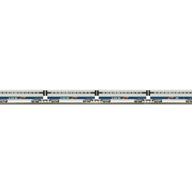 This is an MTH 30-6511 Amtrak 4-Car O-31 SuperLiner Set V2. RailKing Passenger Cars are available in the popular 60′ Streamlined and Madison style bodies. Configured in 4-car, 2-car and single-car configurations, each type features car interior detail, overhead interior lighting, end-of-car diaphragms and intricate under-car detail. All configurations are mounted atop die-cast metal 4 or 6-wheel trucks with operating metal couplers, metal wheels and metal axles. Designed to bring authenticity and smooth performing operation to any O Gauge layout, modelers will find no finer O Gauge value than RailKing Passenger Cars.