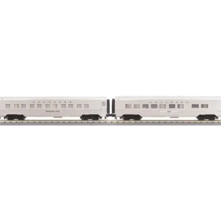 Here is an MTH 30-67515 Southern 2-Car 60′ Streamlined ABS Sleeper/Diner. Features include Durable ABS Intricately Detailed Bodies, Metal Wheels and Axles, Overhead Interior Lighting, Die-Cast 4-Wheel Trucks, Operating Die-Cast Metal Couplers, Colorful, Attractive Paint Schemes, End-of-Car Diaphragms, Fast-Angle Wheel Sets, Needle-Point Axles, Detailed Car Interiors, 2-Car Sets Feature (1) Sleeper, (1) Diner, Unit Measures:34 6/16″ x 2 5/8″ x 3 5/16″, and Operates On O-31 Curves.