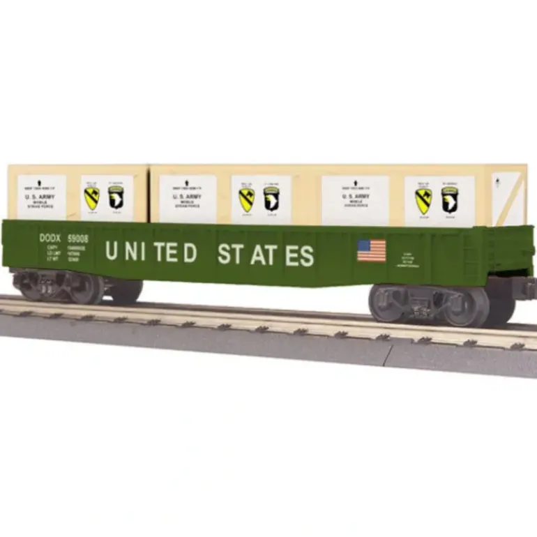 Here is a MTH 30-72014 U.S. Army Gondola Car w/Crates. This car features die-cast metal trucks and operating metal couplers.